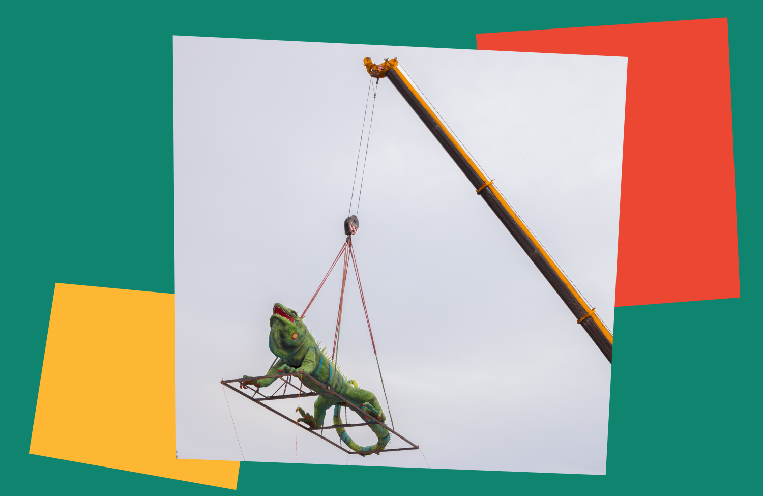 - Iggy, the Zoo’s 40-foot-long, 2,600-pound iguana, was temporarily removed from his post for a much needed makeover. A talented team of Zoo engineers and painters, along with local artist Kristen Soble, transformed our funky Fort Worth Zoo ambassador back to his pristine, lime green glory.